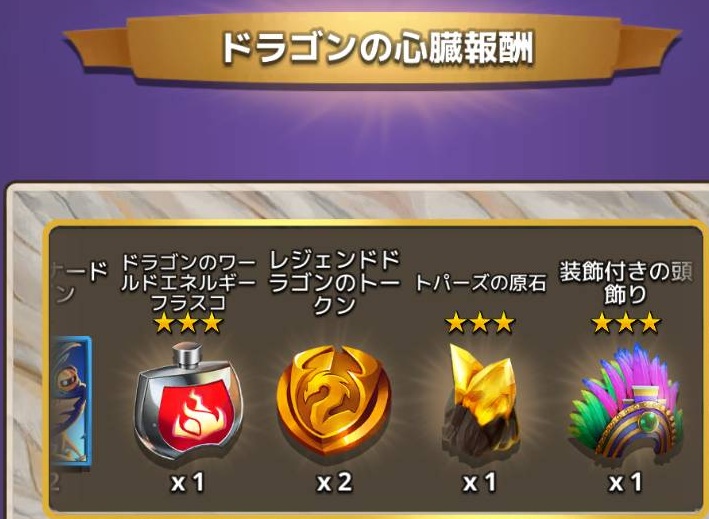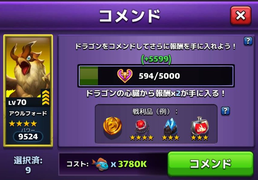 ★3、★4ドラゴンを投入(コメンド)して報酬を入手すると、もらえるものが豪華になります。