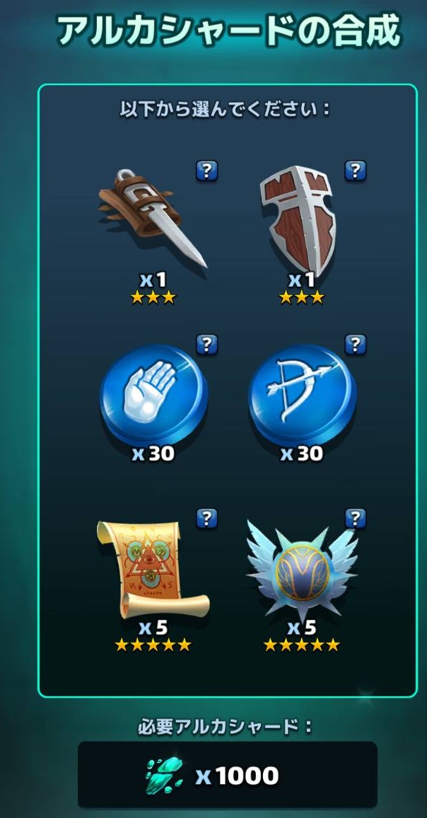 錬金場のアルカシャード1000個交換の★5アイテムリストに出ることがあります↓