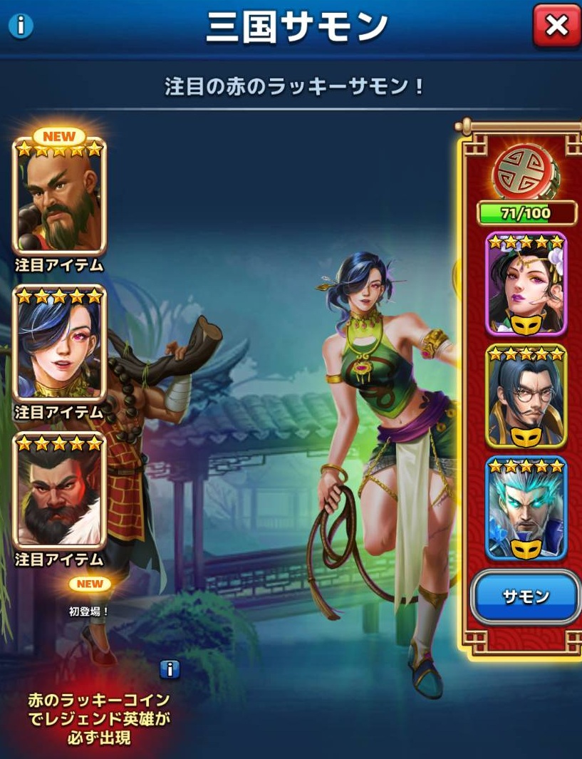 ラッキーコインを100枚貯めると三国英雄(コス付)が手に入る!