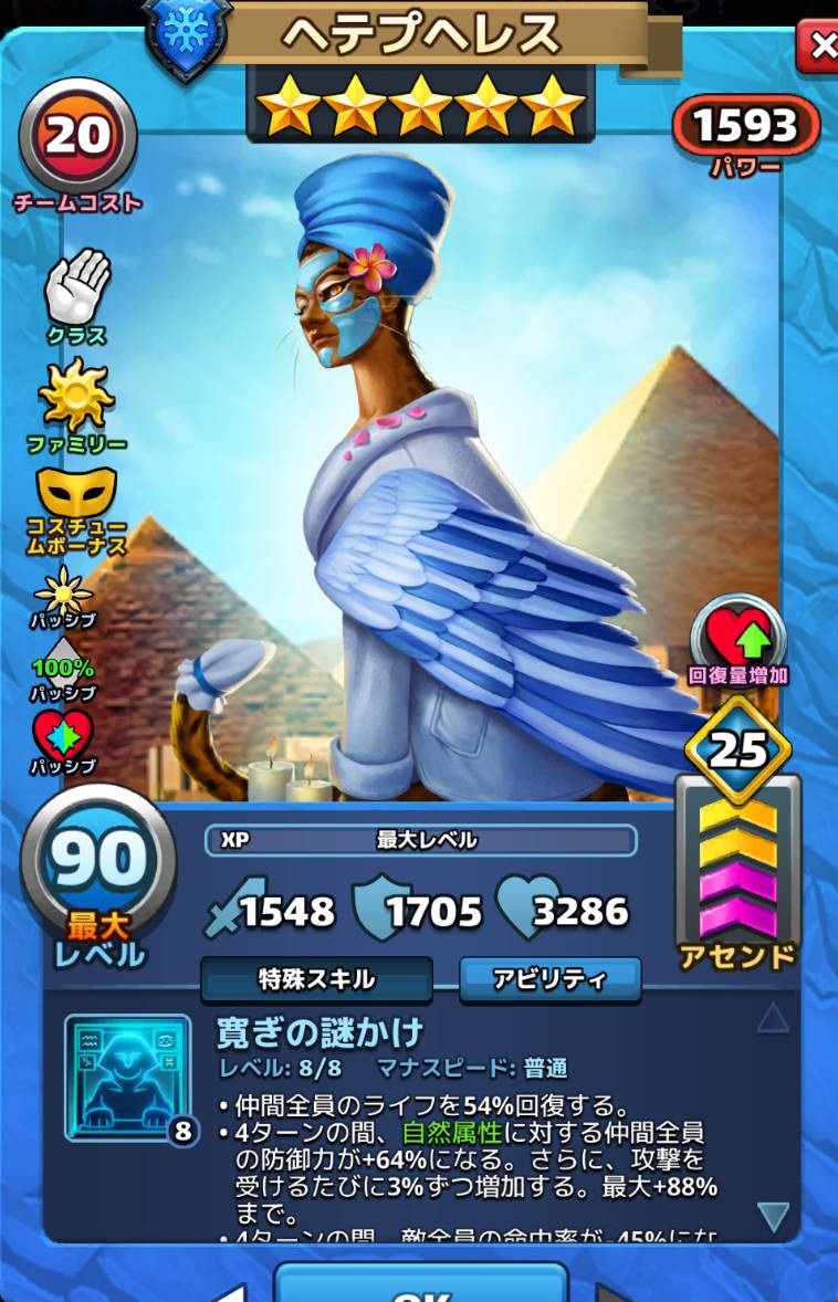 戦力1100~1300後半くらいの英雄が大半のなか、一人だけ1600近い戦力をお持ちです。