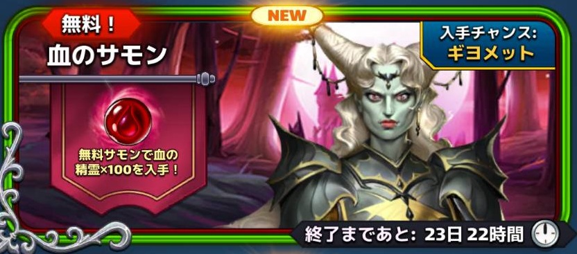 ・このサモン、血の饗宴クエストを回すと手に入る「血の精霊」を集めれば無料で引けます。(精霊100個/1回)