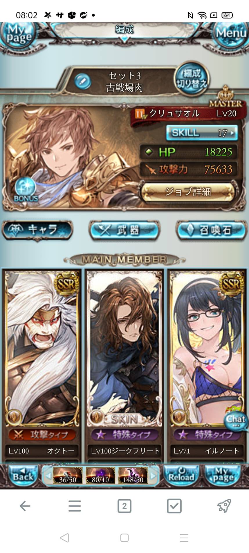 最終オクトー、最終サラーサ、ジークさん、サブにカイムくんです。