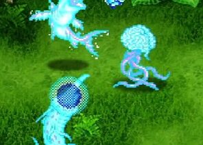 敵単体に毒の煙をぶつけてダメージを与えると共に毒に侵す、水冥の合成術