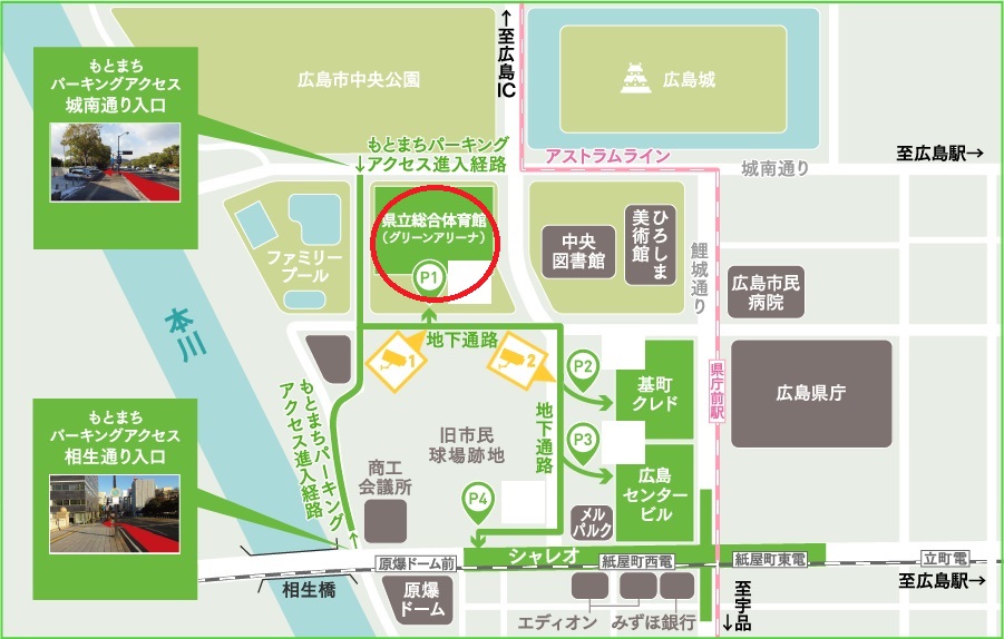 広島県立体育館(グリーンアリーナ)の駐車場は障害者手帳を提示すれば終日無料で利用できます。